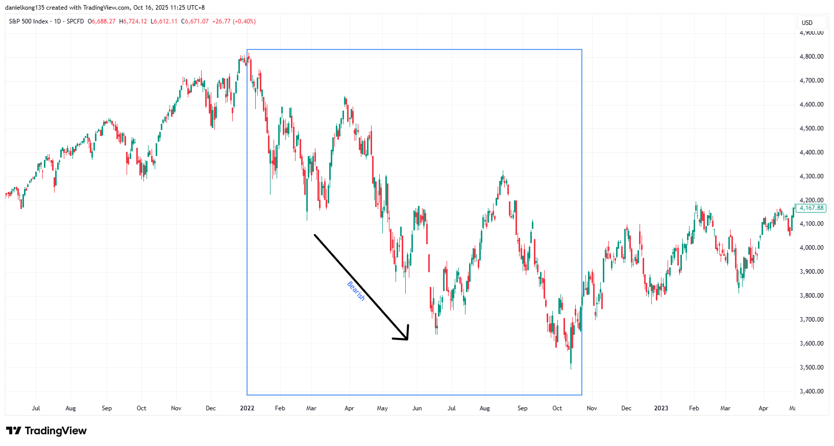 Common examples S&P 500 rally that started in October 2022 to April 2025 S&P 500 bear market of 2022, from January 2022 to October 2022.