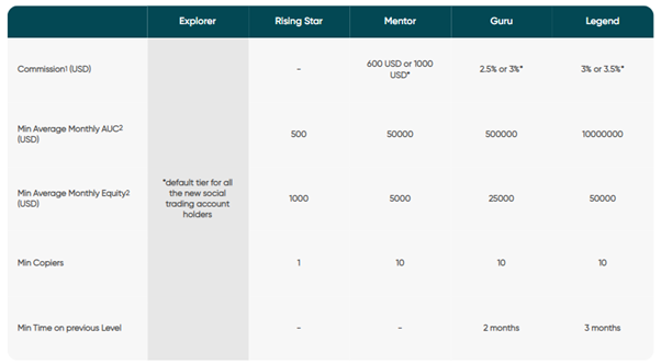 Vantage offers enticing commission rates that can go even higher as you move up the ranks. As an experienced trader, you already have a head start. Begin your venture at the default Explorer Tier and climb the ranks to become a Legend in the Vantage Social League as you continue making successful trades and gain more copiers.