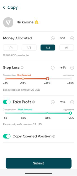 For example, if you buy 1 lot of Tesla stock on a specific day, every copier’s copy trading account will show the same transaction. If you sell the lot, whether at a profit or loss, the copier’s trading account will also reflect the same decision. Typically, copiers don’t have control over these trading decisions. However, Vantage’s Copy Trading feature stands out because it allows copiers to set their stop-loss or take-profit limits, giving them some control over the trades they copy.