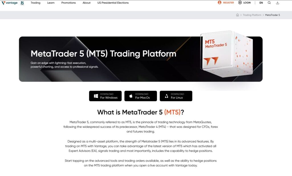 To get started with MetaTrader 5, you can download the platform from Vantage’s website.