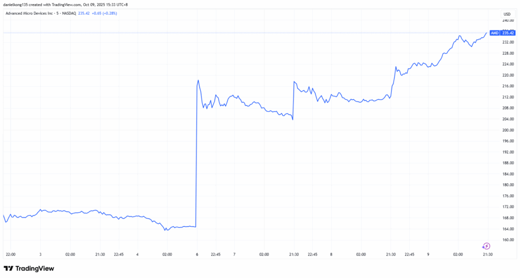 2. “AMD Stock Soars 30% as OpenAI Seeks 10% Stake. Why This Collab Threatens Nvidia. – TradingView”. https://www.tradingview.com/news/tradingview:1dd100f28094b:0-amd-stock-soars-30-as-openai-seeks-10-stake-why-this-collab-threatens-nvidia/ . Accessed 9 Oct 2025.