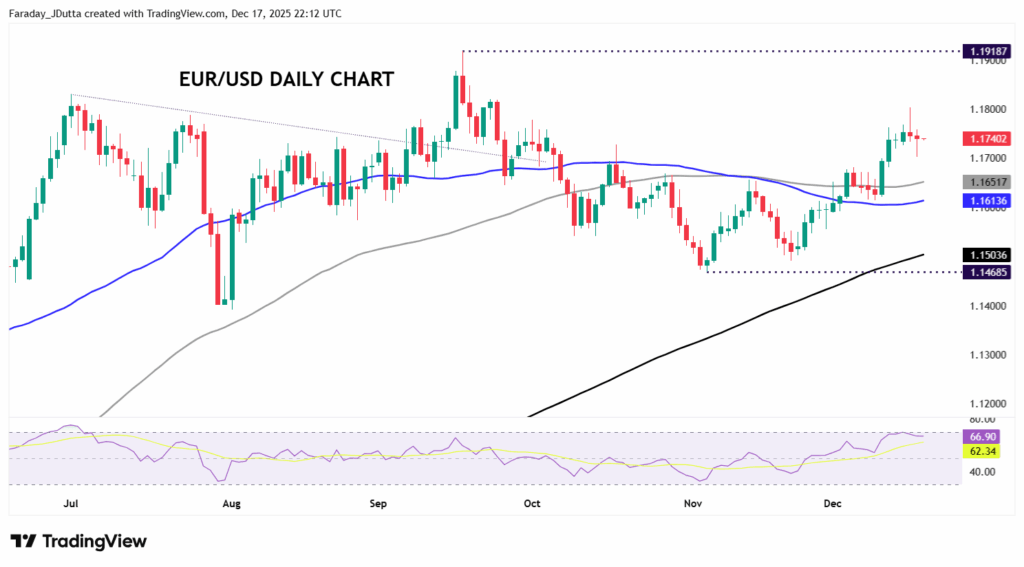 Since bottoming in early November at 1.1468, the world’s most popular currency pair has gradually moved higher, especially since the dip towards the end of that month. Prices broke above the 50-day and 100-day SMAs, now at 1.1613 and 1.1651. The latter push higher came after the more dovish than expected FOMC meeting, from a bullish consolidation pattern. But the major did print a shooting star on Tuesday, which could signal a potential bearish reversal. Prices were mildly overbought, though buyers stepped in yesterday, after the major slipped to 1.1703.
