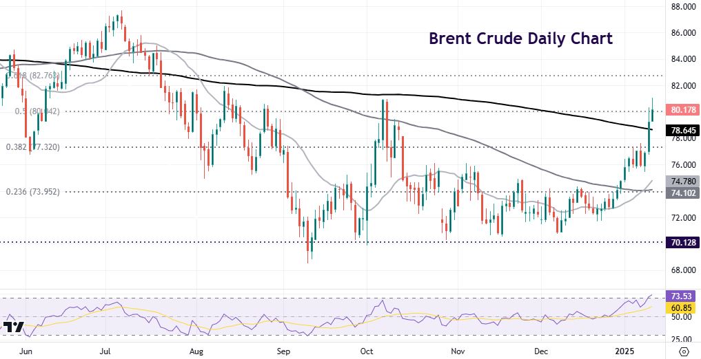 Markets are increasingly worried about inflation, as bond yields surge higher across the world. To add to these price pressures, crude prices has rallied strongly this year up over 7%. Recent stricter US sanctions on Russian oil have targeted both production and export flows. These latest sanctions have the potential to erase the surplus many oil analysts forecast for the oil market in 2025. However, as we saw following the EU ban on Russian oil and products imports, Russia managed to redirect trade flows, which meant little impact on their export volumes. What President Trump does too will have an impact.