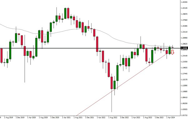 A look at the monthly chart of the GBPUSD pair shows further downside, provided the 50- moving average is not broken to the upside. Prices below 1.2700 could offer further downside potential, although “Cable” could also continue to rise if the 1.2800 area is tested to the upside. The data will be published on Tuesday, 11 June at 08:00 CET.
