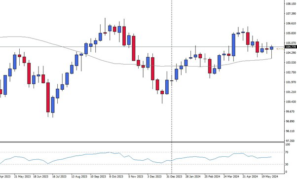 The USDX (US- Dollar index) recovered strongly last week on Friday and could indicate further potential for the Greenback. The positive trend could continue above 105.05. The data will be published on Wednesday, 12 June at 14:30 CET.