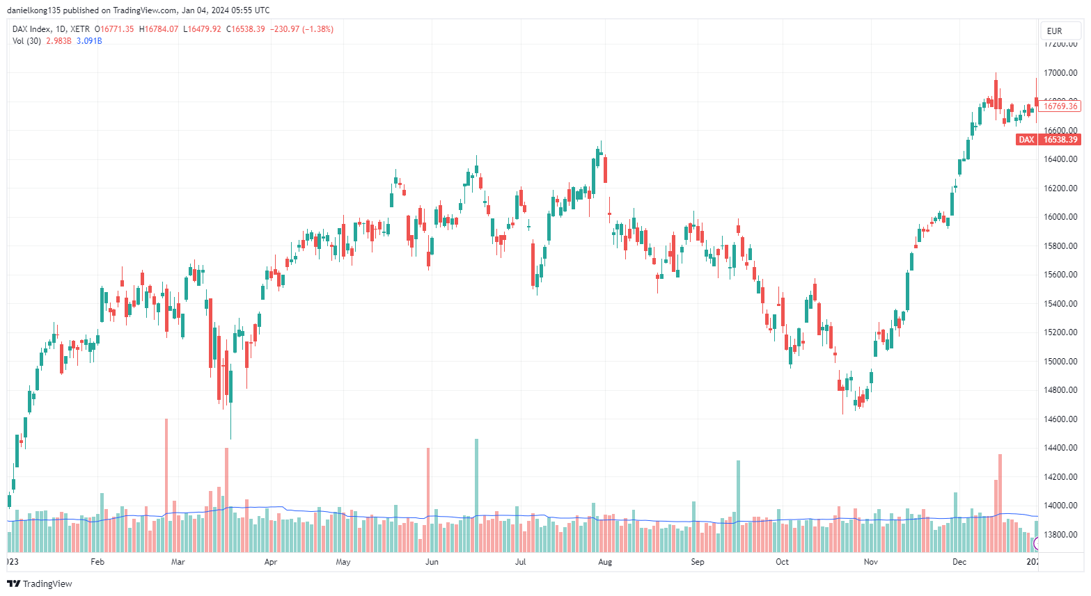 Chart 4: DAX price chart for 2023 (https://www.tradingview.com/x/NHxGrzIZ/)