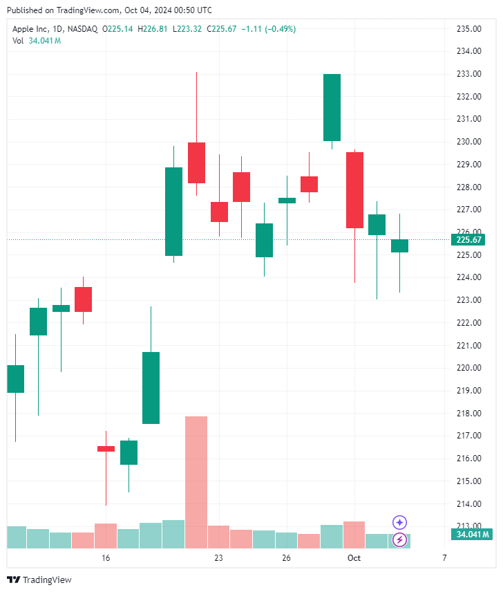 Apple luôn là cổ phiếu bứt phá, đặc biệt là vào các sự kiện quan trọng như báo cáo thu nhập, ra mắt sản phẩm và những thay đổi trong ngành. Các nhà giao dịch thường tìm cách tận dụng biến động giá của Apple trong những giai đoạn này, nhờ sức ảnh hưởng mạnh mẽ trên thị trường và lòng trung thành với thương hiệu.