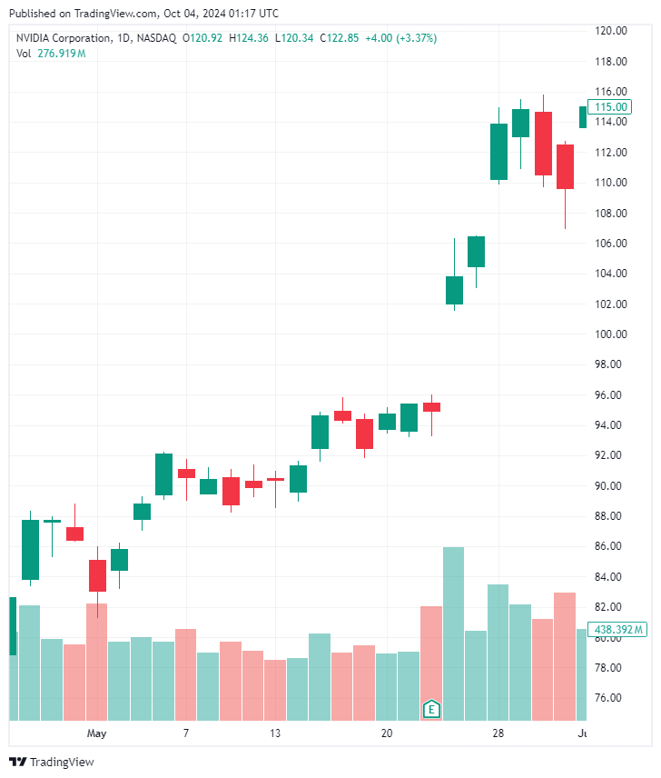 Là một công ty hàng đầu trong ngành công nghiệp bán dẫn, Nvidia đã chứng kiến nhiều bước đột phá nhờ những cải tiến sản phẩm, báo cáo thu nhập và sự thống trị của công ty trên các thị trường như trò chơi điện tử, trí tuệ nhân tạo (AI) và trung tâm dữ liệu. Cổ phiếu Nvidia thường tăng giá trong các giai đoạn thị trường công nghệ tăng giá hoặc khi công ty ra mắt công nghệ tiên tiến dẫn đầu ngành.