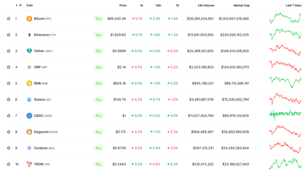 Sau đây là danh sách 10 loại tiền điện tử hàng đầu trên thị trường tại thời điểm viết bài.