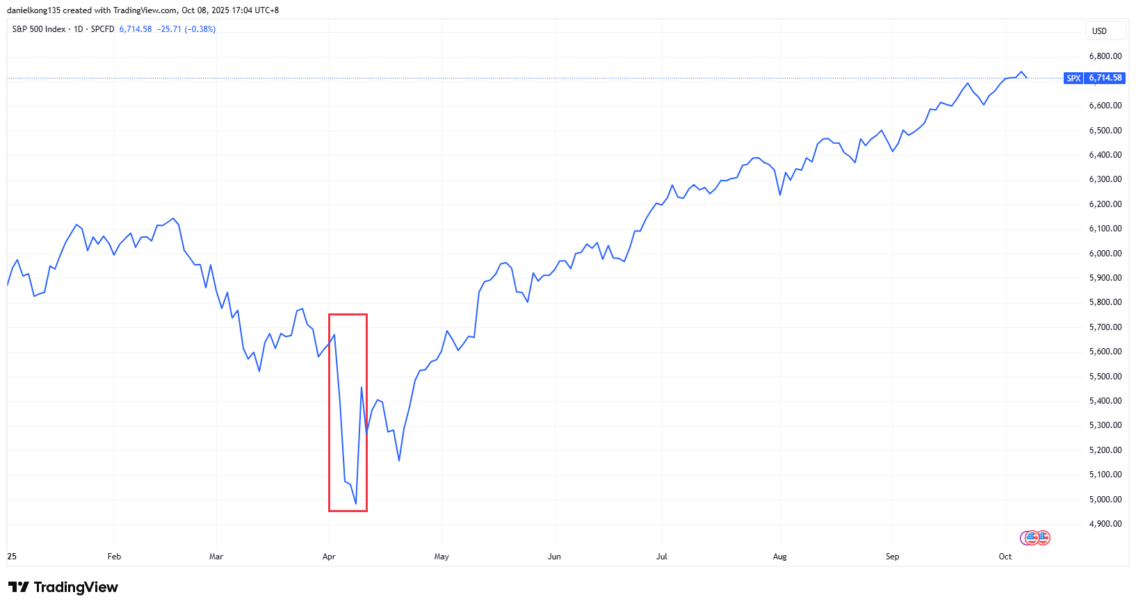 Bạn còn nhớ đợt áp thuế “Ngày Giải phóng” hồi tháng Tư không? Thị trường hoảng loạn và bán tháo. Chỉ số S&P 500 giảm xuống dưới 5.000 điểm, trong khi các tít báo giật tít “Chiến tranh Thương mại 2.0” và tâm lý thị trường trở nên tiêu cực. Nhưng chỉ trong vài tuần, làn sóng bán tháo đã lắng xuống khi thanh khoản hồi phục trở lại.