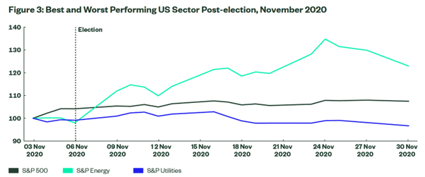 Đối với năm 2020, chúng ta một lần nữa chứng kiến sự phân hóa rõ rệt theo ngành diễn ra vào tháng 11 (thời điểm diễn ra Ngày bỏ phiếu).